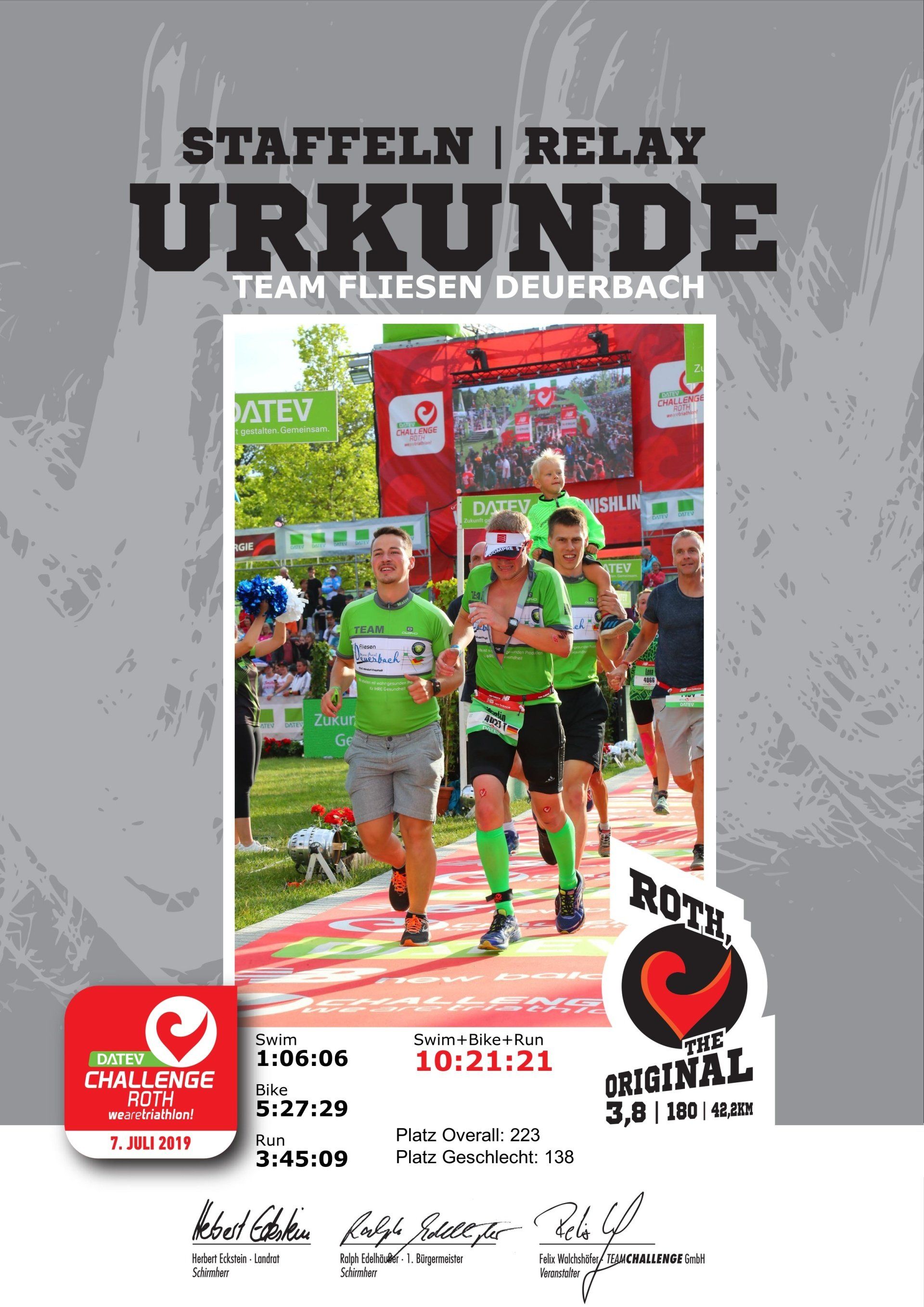 TEAM FLIESEN DEUERBACH als Staffel beim Triathlon Challenge Roth und konnte erneut finishen.